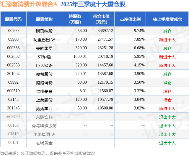 汇添富消费升级混合A的前十大重仓股如下: