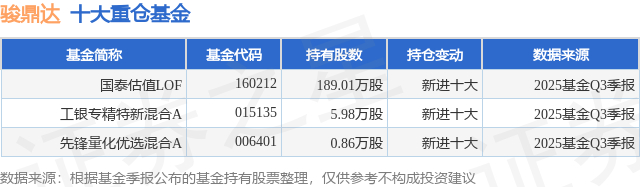 重仓骏鼎达的公募基金请见下表: