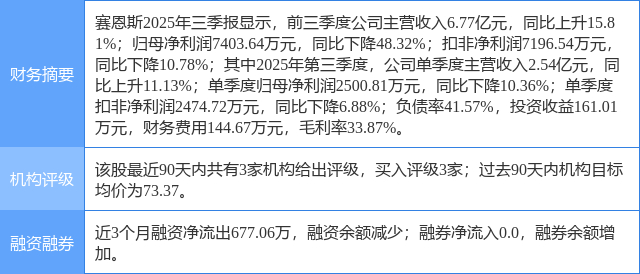 2025年11月1日,东吴证券研究员袁理,谷玥发布了对赛恩斯的研报《2025年三季报点评:业绩受累于费用&减值,拟发行可转债扩产药剂》,该研报对赛恩斯给出“买入”评级。证券之星数据中心根据近三年发布的研报数据计算,该研报作者对此股的盈利预测准确度为81.15%。