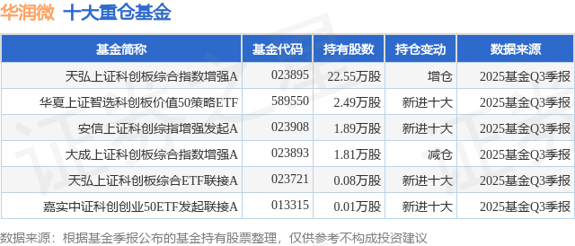 根据2025基金Q3季报公募基金重仓股数据,重仓该股的公募基金共6家,其中持有数量最多的公募基金为天弘基金的天弘上证科创板综合指数增强A。天弘上证科创板综合指数增强A目前规模为11.12亿元,最新净值1.371(12月9日),较上一交易日下跌0.17%。该公募基金现任基金经理为林心龙。林心龙在任的基金产品包括:天弘创业板ETF联接A,管理时间为2022年5月25日至今,期间收益率为39.7%;天弘中证计算机ETF联接A,管理时间为2022年5月25日至今,期间收益率为39.43%;天弘创业板ETF,管理时间为2022年5月25日至今,期间收益率为41.32%;天弘中证计算机ETF,管理时间为2022年5月25日至今,期间收益率为42.54%。