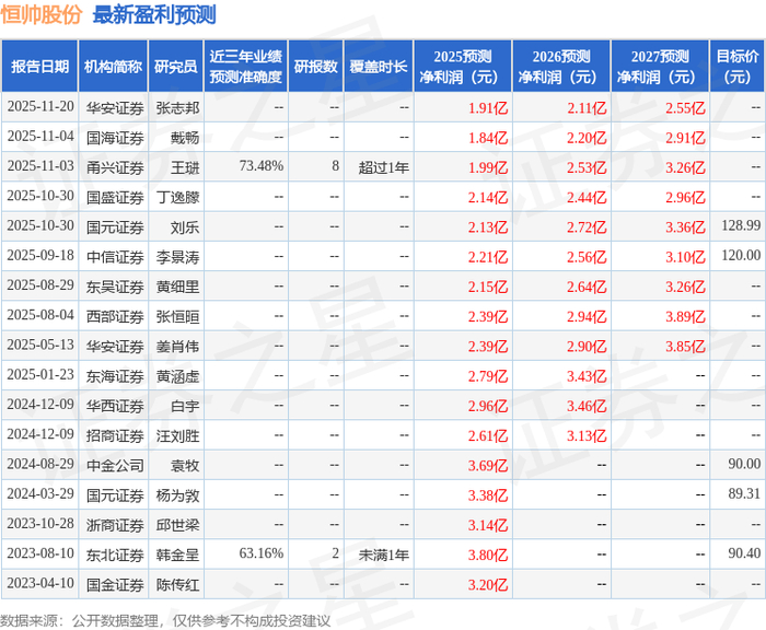 恒帅股份2025年三季报显示,前三季度公司主营收入6.8亿元,同比下降3.47%;归母净利润1.29亿元,同比下降21.07%;扣非净利润1.15亿元,同比下降25.34%;其中2025年第三季度,公司单季度主营收入2.51亿元,同比上升4.18%;单季度归母净利润4441.37万元,同比下降7.25%;单季度扣非净利润3994.9万元,同比下降13.41%;负债率30.12%,投资收益681.52万元,财务费用-342.33万元,毛利率31.18%。