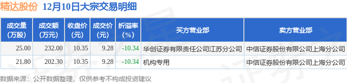证券之星消息,12月10日精达股份发生大宗交易,交易数据如下: