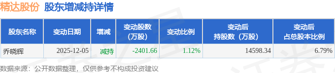 该股近半年内有股东持股变动,合计净减持2401.66万股,股东增减持明细如下表: