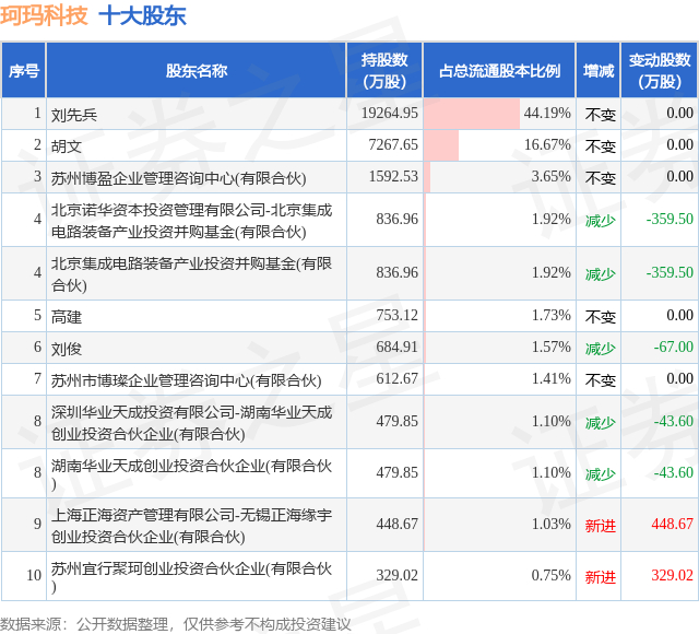 根据珂玛科技2025年三季报公布的十大股东详情如下: