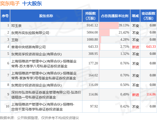 根据奕东电子2025年三季报公布的十大股东详情如下: