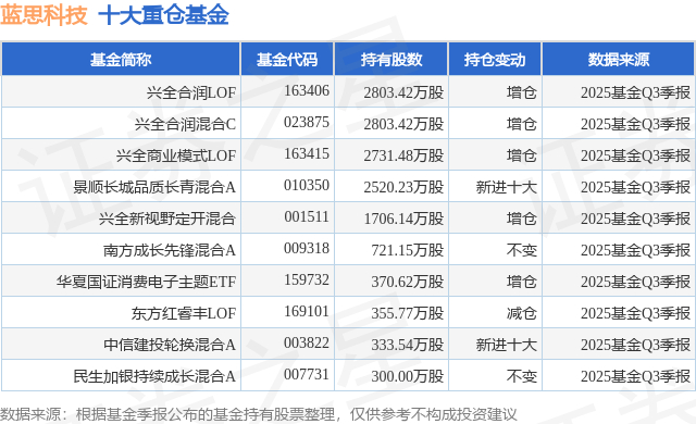 根据2025基金Q3季报公募基金重仓股数据,重仓该股的公募基金共132家,其中持有数量最多的公募基金为兴证全球基金的兴全合润LOF。兴全合润LOF目前规模为249.14亿元,最新净值2.0775(12月10日),较上一交易日下跌0.23%,近一年上涨30.56%。该公募基金现任基金经理为谢治宇。谢治宇在任的基金产品包括:兴全合宜混合(LOF)A,管理时间为2018年1月23日至今,期间收益率为96.48%;兴全社会价值三年持有混合,管理时间为2019年12月26日至今,期间收益率为110.57%;兴全合润混合C,管理时间为2025年4月8日至今,期间收益率为48.14%。