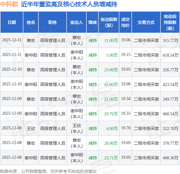 中科软近半年内的董监高及核心技术人员增减持详情如下: