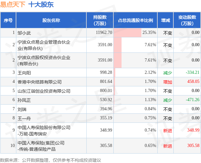 根据易点天下2025年三季报公布的十大股东详情如下: