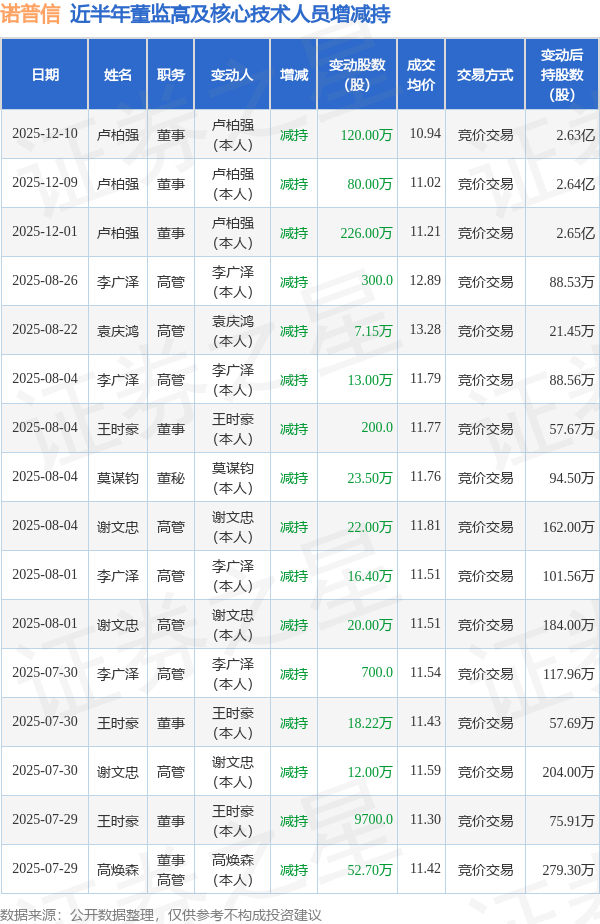 诺普信近半年内的董监高及核心技术人员增减持详情如下: