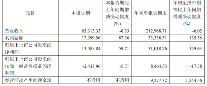 而在今年前三季度,公司交易性金融资产为13.78亿元,同比大幅增长91.56%,报告期内实现的公允价值变动净收益为1.63亿元,成为利润的重要支撑。若剔除投资收益的影响,其主营业务盈利能力持续承压。前三季度扣非归母净利润同比下滑17.38%,且第三季度单季已出现2433.96万元的亏损。