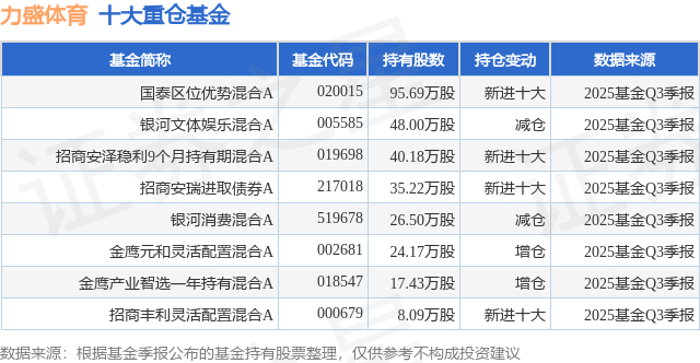 重仓力盛体育的公募基金请见下表: