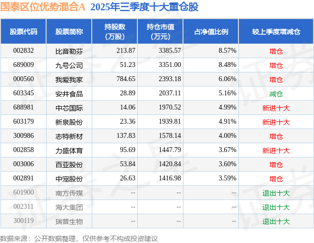 根据2025基金Q3季报公募基金重仓股数据,重仓该股的公募基金共8家,其中持有数量最多的公募基金为国泰基金的国泰区位优势混合A。国泰区位优势混合A目前规模为2.45亿元,最新净值4.5593(12月11日),较上一交易日下跌1.56%,近一年上涨16.96%。该公募基金现任基金经理为智健。