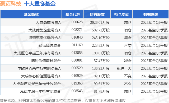 根据2025基金Q3季报公募基金重仓股数据,重仓该股的公募基金共43家,其中持有数量最多的公募基金为大成基金的大成高鑫股票A。大成高鑫股票A目前规模为114.53亿元,最新净值5.2275(12月11日),较上一交易日下跌0.08%,近一年上涨20.01%。该公募基金现任基金经理为刘旭。刘旭在任的基金产品包括:大成优势企业混合A,管理时间为2019年12月24日至今,期间收益率为147.59%;大成睿鑫股票A,管理时间为2020年8月11日至今,期间收益率为47.36%;大成核心价值甄选混合A,管理时间为2021年3月15日至今,期间收益率为32.04%。