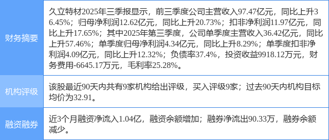 今日久立特材(002318)涨6.33%,收盘报25.86元。