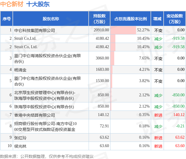 根据中仑新材2025年三季报公布的十大股东详情如下: