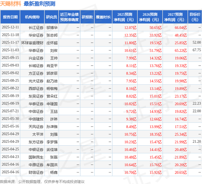 最新盈利预测明细如下: