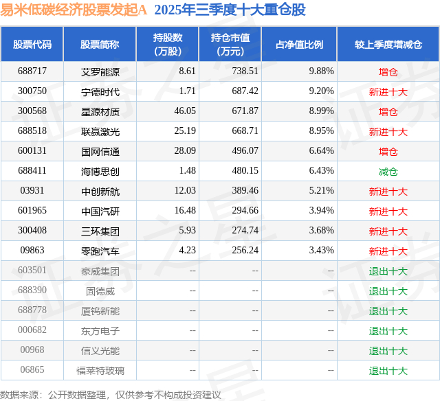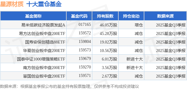 根据2025基金Q3季报公募基金重仓股数据,重仓该股的公募基金共7家,其中持有数量最多的公募基金为易米基金的易米低碳经济股票发起A。易米低碳经济股票发起A目前规模为0.47亿元,最新净值1.132(12月12日),较上一交易日上涨0.28%,近一年上涨45.52%。该公募基金现任基金经理为孙会东。孙会东在任的基金产品包括:易米远见价值一年定开混合A,管理时间为2024年4月30日至今,期间收益率为65.39%。