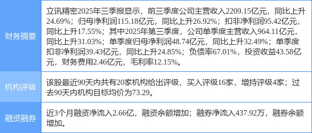 2025年11月3日,浦银国际证券研究员沈岱,黄佳琦发布了对立讯精密的研报《消费电子稳健成长,数据中心和汽车加速成长》,该研报对立讯精密给出“买入”评级,认为其目标价为74.3元,研报发布时股价为63.00元,预期涨幅为17.94%。证券之星数据中心根据近三年发布的研报数据计算,该研报作者对此股的盈利预测准确度为77.57%。
