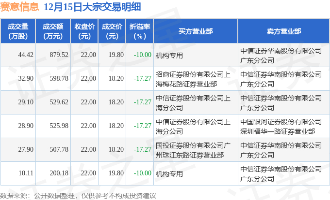 证券之星消息,12月15日赛意信息发生大宗交易,交易数据如下: