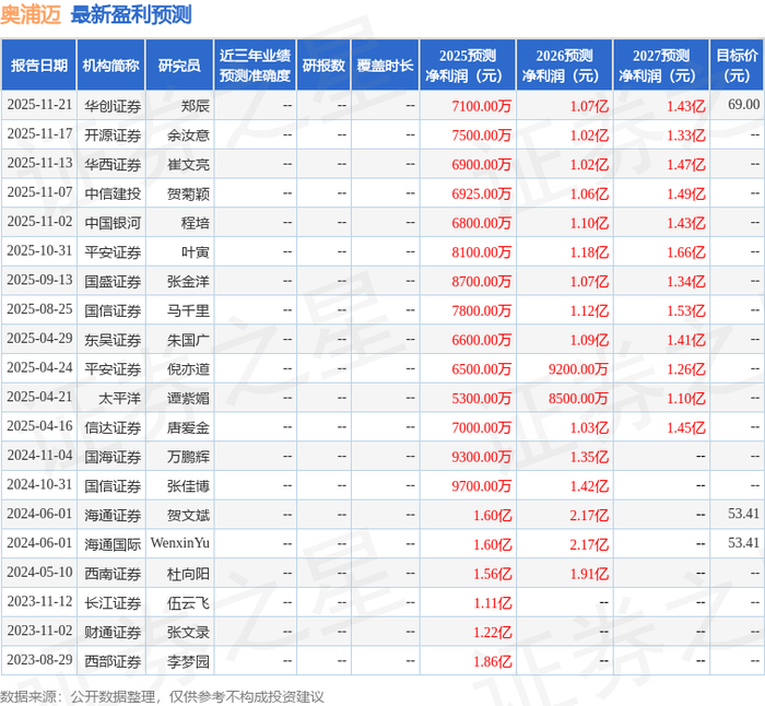 奥浦迈2025年三季报显示,前三季度公司主营收入2.72亿元,同比上升25.79%;归母净利润4942.53万元,同比上升81.48%;扣非净利润3736.92万元,同比上升118.8%;其中2025年第三季度,公司单季度主营收入9377.91万元,同比上升29.8%;单季度归母净利润1187.84万元,同比上升283.59%;单季度扣非净利润779.18万元,同比上升2174.87%;负债率7.59%,投资收益1998.61万元,财务费用-1352.73万元,毛利率54.57%。