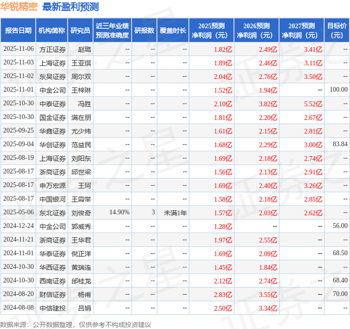 华锐精密2025年三季报显示,前三季度公司主营收入7.71亿元,同比上升31.85%;归母净利润1.37亿元,同比上升78.37%;扣非净利润1.36亿元,同比上升79.83%;其中2025年第三季度,公司单季度主营收入2.52亿元,同比上升44.49%;单季度归母净利润5198.61万元,同比上升915.62%;单季度扣非净利润5174.13万元,同比上升1040.88%;负债率47.98%,投资收益13.47万元,财务费用3020.46万元,毛利率39.52%。
