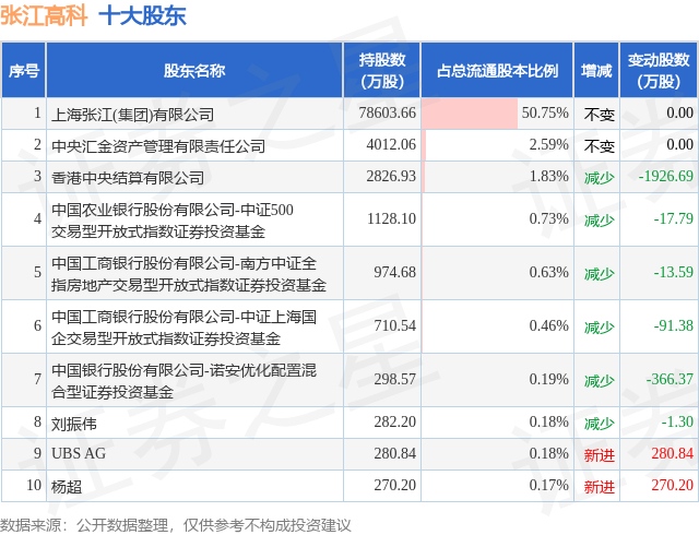 根据张江高科2025年三季报公布的十大股东详情如下: