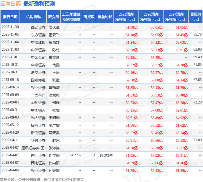 云南白药2025年三季报显示,前三季度公司主营收入306.54亿元,同比上升2.47%;归母净利润47.77亿元,同比上升10.41%;扣非净利润45.5亿元,同比上升6.68%;其中2025年第三季度,公司单季度主营收入93.97亿元,同比下降0.66%;单季度归母净利润11.44亿元,同比上升0.55%;单季度扣非净利润10.89亿元,同比下降3.61%;负债率25.36%,投资收益9.51亿元,财务费用-3903.01万元,毛利率30.06%。