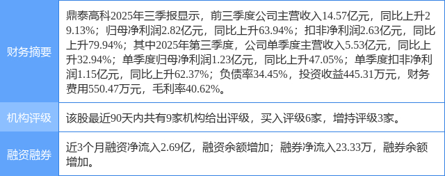 2025年10月28日,上海证券研究员王亚琪发布了对鼎泰高科的研报《2025Q3业绩点评:AIPCB景气拉动钻针需求,25Q3业绩延续高增》,该研报对鼎泰高科给出“买入”评级。研报中预计公司2025-2027年实现营业收入21.01/32.66/40.68亿元,同比+32.99%/+55.48%/+24.54%;实现归母净利润为3.97/7.04/8.98亿元,同比+75.01%/+77.36%/+27.52%,当前股价对应PE115/65/51倍,维持“买入”评级。证券之星数据中心根据近三年发布的研报数据计算,该研报作者对此股的盈利预测准确度为62.15%。