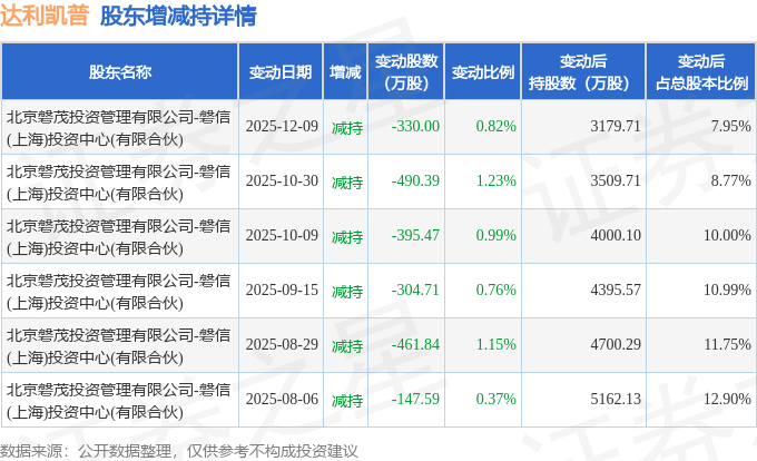 截至2025年12月16日收盘,达利凯普(301566)报收于19.52元,上涨1.14%,换手率12.32%,成交量25.55万手,成交额4.98亿元。