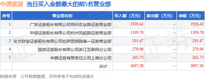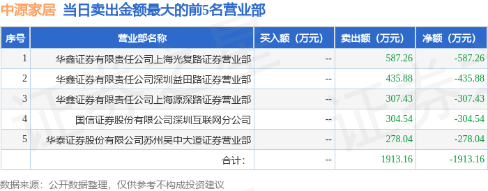证券之星消息,沪深交易所2025年12月16日公布的交易公开信息显示,中源家居(603709)因有价格涨跌幅限制的日收盘价格跌幅偏离值达到7%的前五只证券登上龙虎榜。此次是近5个交易日内第3次上榜。