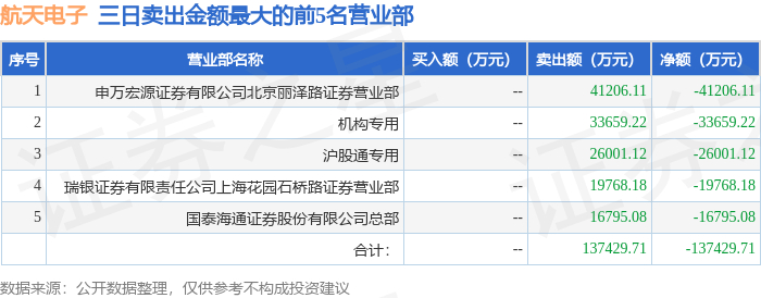 从龙虎榜公布的三日买卖数据来看,机构合计净卖出3.37亿元,北向资金合计净买入4813.46万元。陈小群、作手新一等知名游资榜上有名。(知名游资陈小群一般指中国银河证券股份有限公司大连黄河路证券营业部席位、知名游资作手新一一般指国泰海通证券股份有限公司南京太平南路证券营业部席位,根据市场资料整理,仅供参考)
