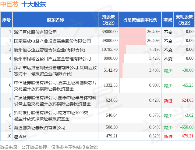 根据中巨芯2025年三季报公布的十大股东详情如下: