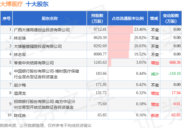 根据大博医疗2025年三季报公布的十大股东详情如下: