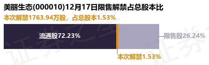 证券之星消息,根据市场公开信息整理,美丽生态(000010)于12月17日将有1763.94万股限售股份解禁,为公司股权分置限售股份,占公司总股本1.53%。(本次数据根据历史公告整理得出,实际情况以上市公司最新公告为准)最近一年内,该股累计解禁3.14亿股,占总股本的27.3%。本次解禁后,公司还有3.02亿股限售股份,占总股本26.24%。具体如下图所示: