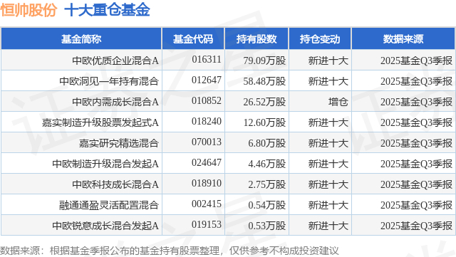 重仓恒帅股份的公募基金请见下表: