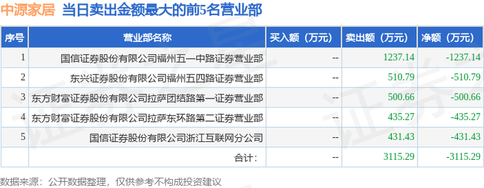 证券之星消息,沪深交易所2025年12月17日公布的交易公开信息显示,中源家居(603709)因有价格涨跌幅限制的日收盘价格跌幅偏离值达到7%的前五只证券,非ST、*ST和S证券连续三个交易日内收盘价格跌幅偏离值累计达到20%的证券登上龙虎榜。此次是近5个交易日内第4次上榜。
