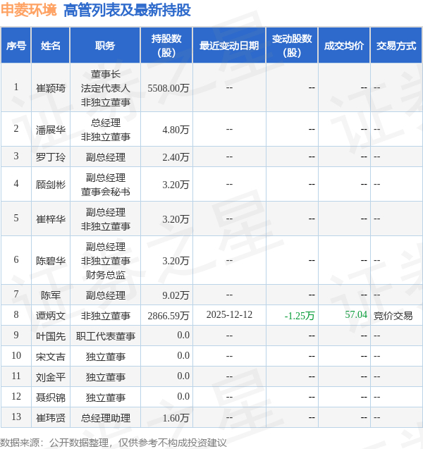 证券之星消息,根据12月17日市场公开信息、上市公司公告及交易所披露数据整理,申菱环境(301018)最新董监高及相关人员股份变动情况:2025年12月16日公司董事谭炳文共减持公司股份6.45万股,占公司总股本为0.0242%。变动期间公司股价上涨2.09%,12月16日当日收盘报56.18元。