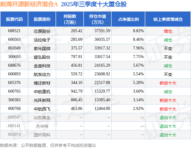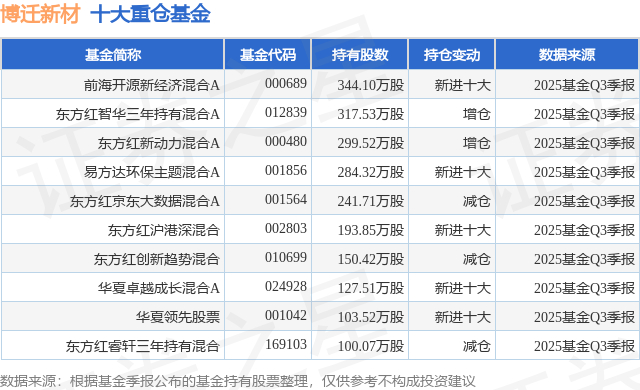 根据2025基金Q3季报公募基金重仓股数据,重仓该股的公募基金共64家,其中持有数量最多的公募基金为前海开源基金的前海开源新经济混合A。前海开源新经济混合A目前规模为38.92亿元,最新净值2.6023(12月17日),较上一交易日上涨0.98%,近一年上涨27.79%。该公募基金现任基金经理为崔宸龙。崔宸龙在任的基金产品包括:前海开源公用事业股票,管理时间为2020年7月20日至今,期间收益率为199.49%;前海开源沪港深非周期股票A,管理时间为2020年7月20日至今,期间收益率为15.41%;前海开源沪港深智慧生活混合,管理时间为2021年6月24日至今,期间收益率为-22.54%。