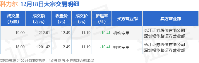 证券之星消息,12月18日科力尔发生大宗交易,交易数据如下:
