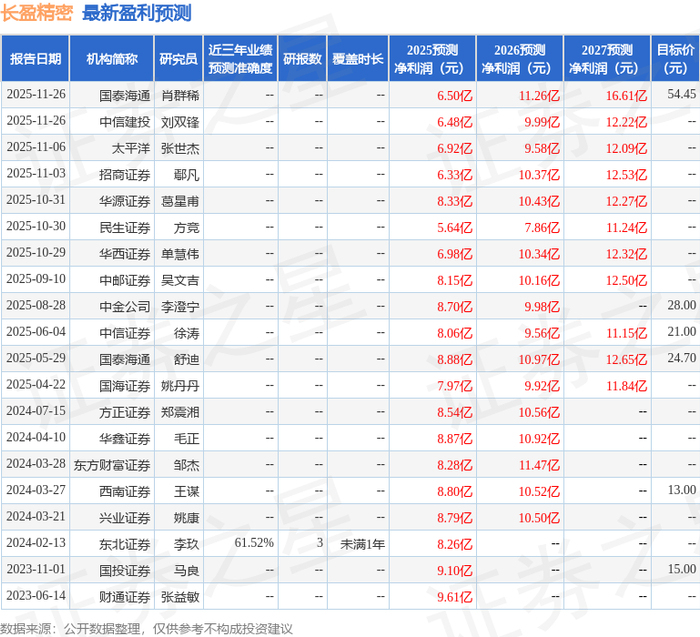中邮证券有限责任公司吴文吉,万玮近期对长盈精密进行研究并发布了研究报告《机器人全方位布局,新能源稳步推进》,给予长盈精密买入评级。