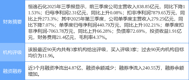 今日恒逸石化(000703)涨5.20%,收盘报8.29元。