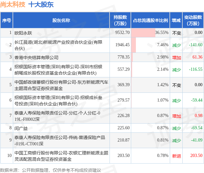 根据尚太科技2025年三季报公布的十大股东详情如下: