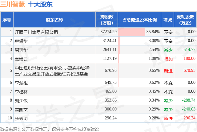 根据三川智慧2025年三季报公布的十大股东详情如下: