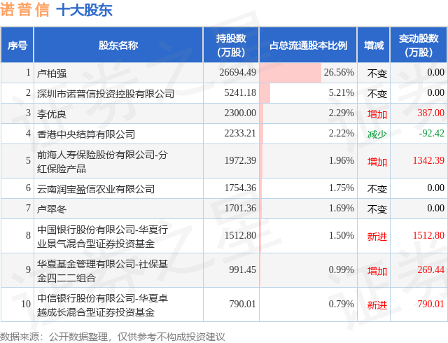 根据诺普信2025年三季报公布的十大股东详情如下: