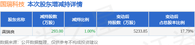 证券之星消息,12月22日国瑞科技发布公告《国瑞科技:关于持股5%以上股东减持股份触及1%整数倍的提示性公告》,其股东龚瑞良于2025年11月20日至2025年12月19日间合计减持293.0万股,占公司目前总股本的0.9958%,变动期间该股股价下跌15.09%,截止12月19日收盘报14.52元。