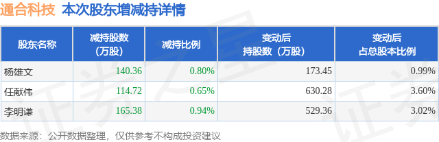 股东增减持详情见下表: