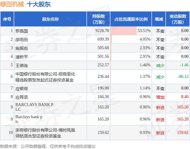 根据绿田机械2025年三季报公布的十大股东详情如下:
