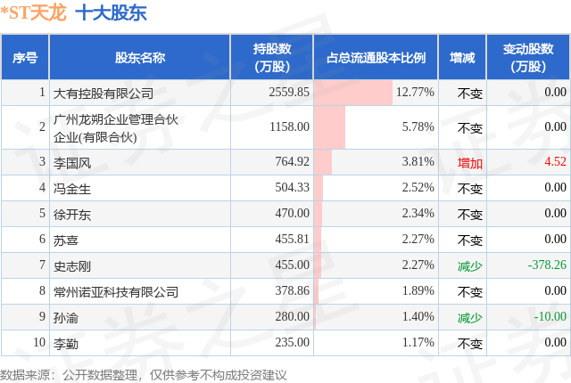 根据*ST天龙2025年三季报公布的十大股东详情如下: