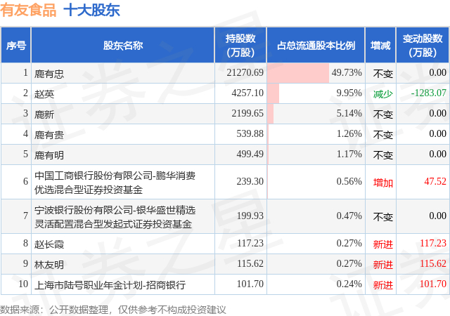 根据有友食品2025年三季报公布的十大股东详情如下: