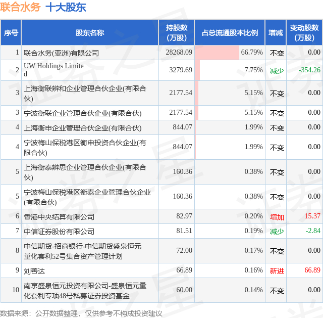 根据联合水务2025年三季报公布的十大股东详情如下: